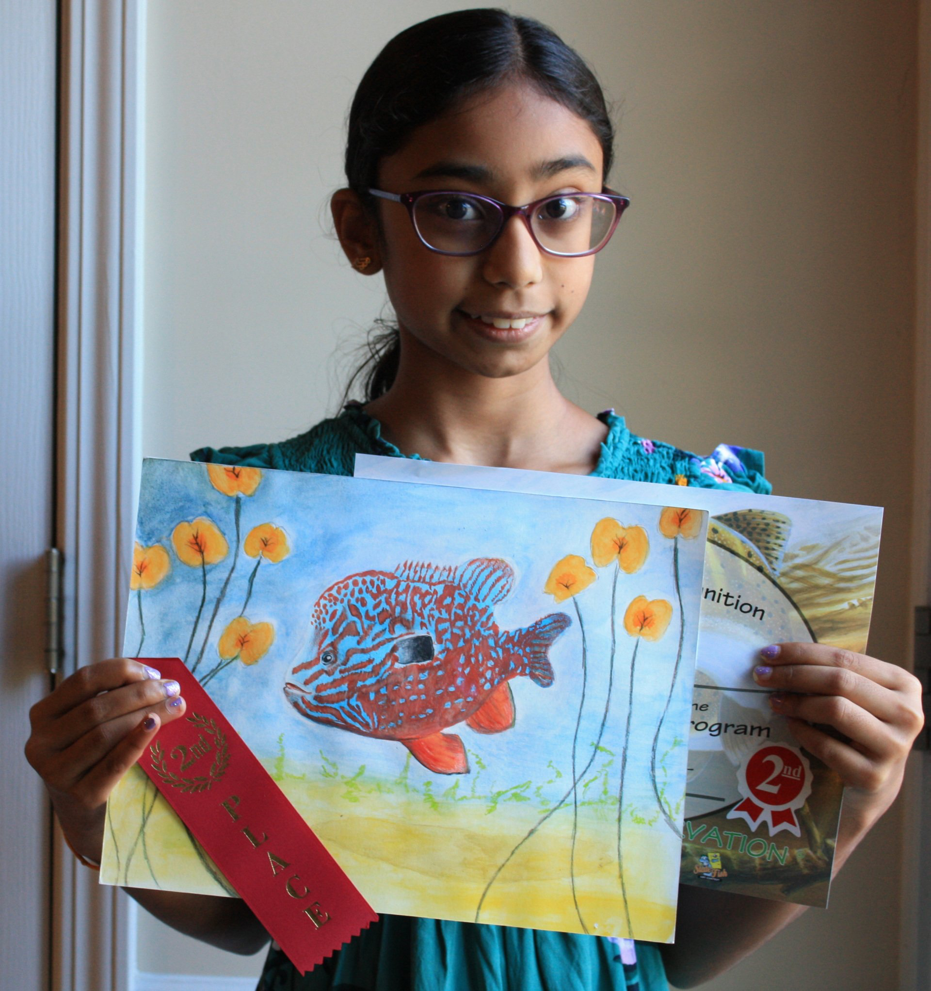 A rising 6th grader, Varsha Rajesh from Community House Middle School, placed 2nd in N.C. for the Wildlife Forever State Fish Arts Contest.
